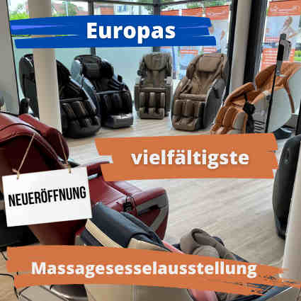 2021年7月1日からシュトゥットガルト郊外のヴァインシュタットで、世界各国の有名メーカーの30台以上のマッサージチェアを見て、感じて、試すことができるようになります。