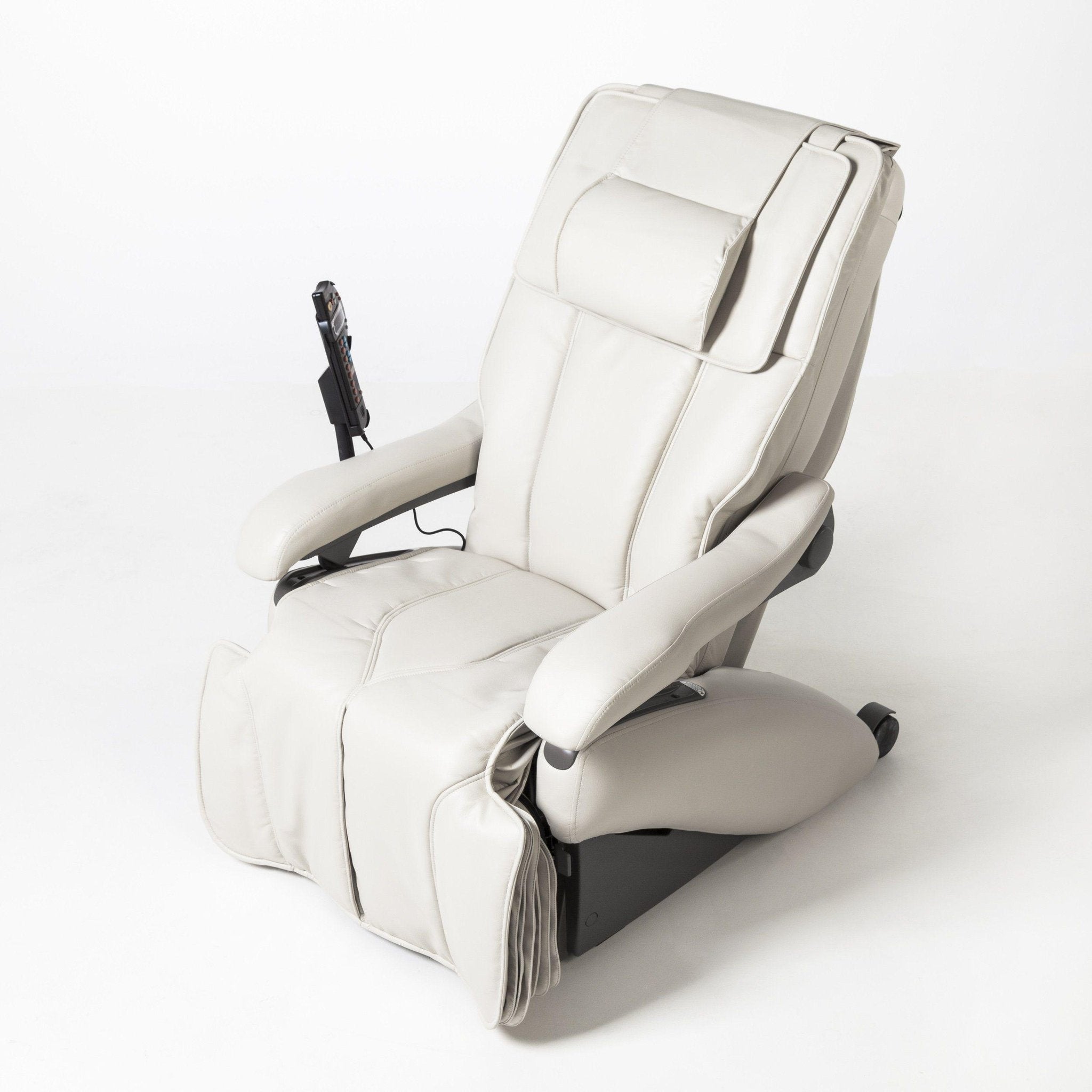 日本のファミリーイナダの高級マッサージチェア「マイスター」W1 Plus MultiStarは、上質な抗菌イミテーションレザーのカバーの下に、本物の作品--というより、もっと正確に言えば、その下にある作品--があります。お手入れも簡単で、カラーはトレンドカラーのブラックとベージュの2色です。この上なく心地よい張地が、あなたを心地よいクラウド7へと導いてくれることでしょう。特に、幅広のシートと最大120kgの耐荷重は、体重の重いユーザーでも制約や窮屈さを感じることなく、「マスター」のメリットを最大限に享受できる点で高く評価できる。アームレストは完全に折りたたむことができ、フットレストは使用しないときはフラットに収納できるため、車いすの方でも安心して移乗することができます。