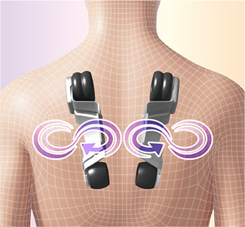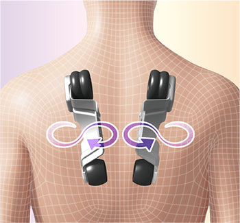 背もたれを高くすることで、首から肩にかけて強力にマッサージ。マッサージボールが人の手のような角度で肩にアプローチし、凝り固まった肩を効果的に揉みほぐす。