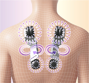 指圧」とは、もみ玉を使って筋肉に垂直方向の圧力を加えるマッサージ法。