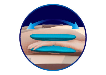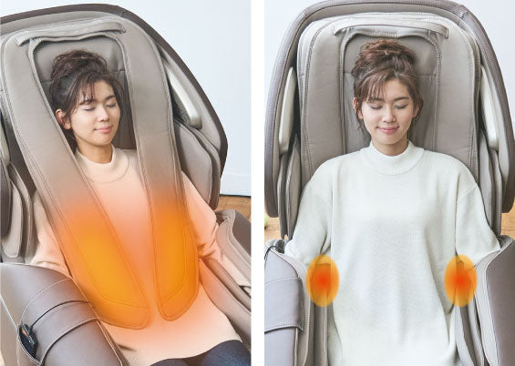マッサージ中、背中クッションが腰をやさしく温めるので、温感をお楽しみください。また、ヒーティングパッドをお腹の上に置いて、さらに温めることもできます。