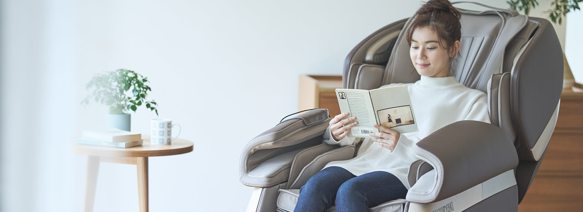 背もたれに全身を預けながら、ゆったりとくつろいでください。先進的なフレーム構造により、首から臀部にかけて連続的なマッサージを体感できます。