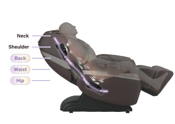 このチェアのフレキシブルな軌道と4Dマッサージ機構は、肩から足先まで包括的なトリートメントを提供します。