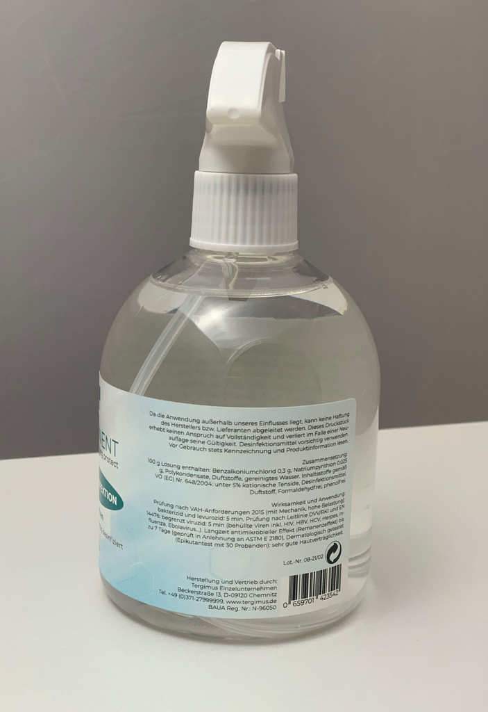 ピュアマナントロングプロテクトは、医療在庫品、医療機器、あらゆる種類の表面を効果的に消毒・洗浄する消毒剤です。ピュアマナントロングプロテクトの長期効果は、アルコールではなく、最新の第4級アンモニウム化合物をベースにしていることに起因しています。また、殺生物活性物質を表面に付着させ、活性基を形成する添加剤も含まれています。これにより、バクテリアや真菌を積極的に殺菌し、ウイルスを不活性化する。