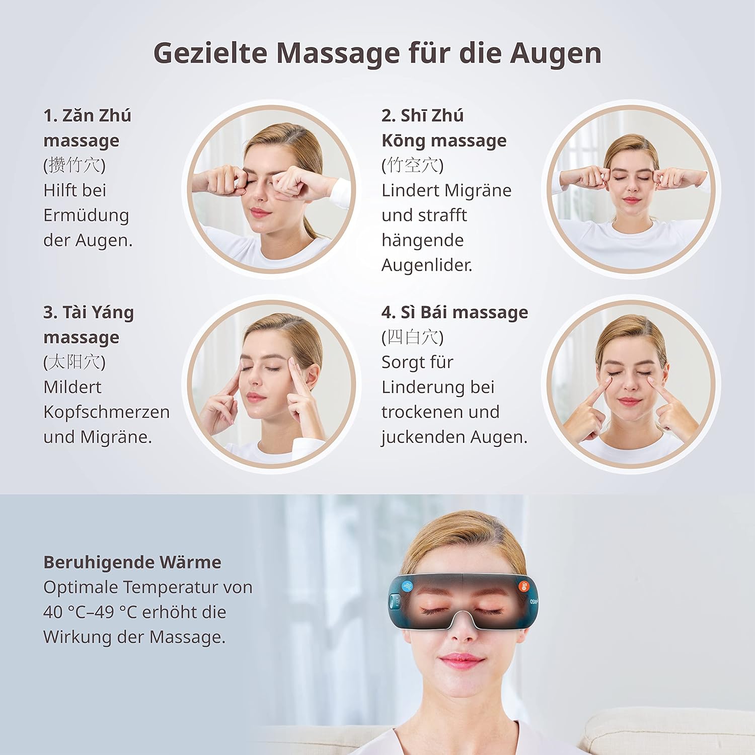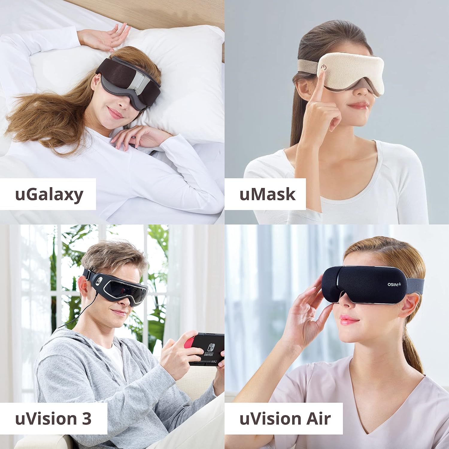 uVision Airアイマッサージャー - ムードライトとヒート機能付きマッサージグラスで、頭痛、不眠症、目の下の袋、疲労を和らげます。
